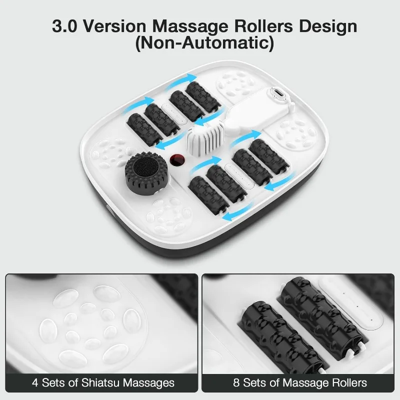 Upgrade Massage Design: 3.0 version of the non-motorized massage roller foot massager spa features 8 groups of massage rollers and 4 groups of shiatsu massage, provides targeted relief to tired and achy feet, stimulates blood flow, and revitalizes tired feet